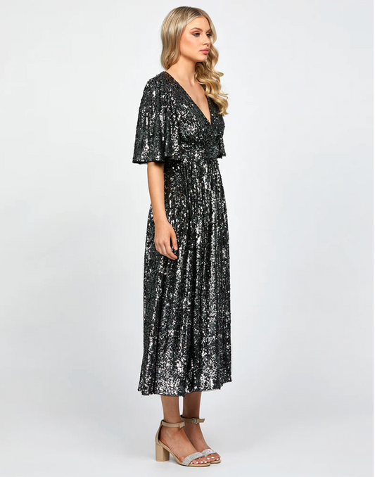Vestido Midi de Lentejuelas con Mangas Fluidas